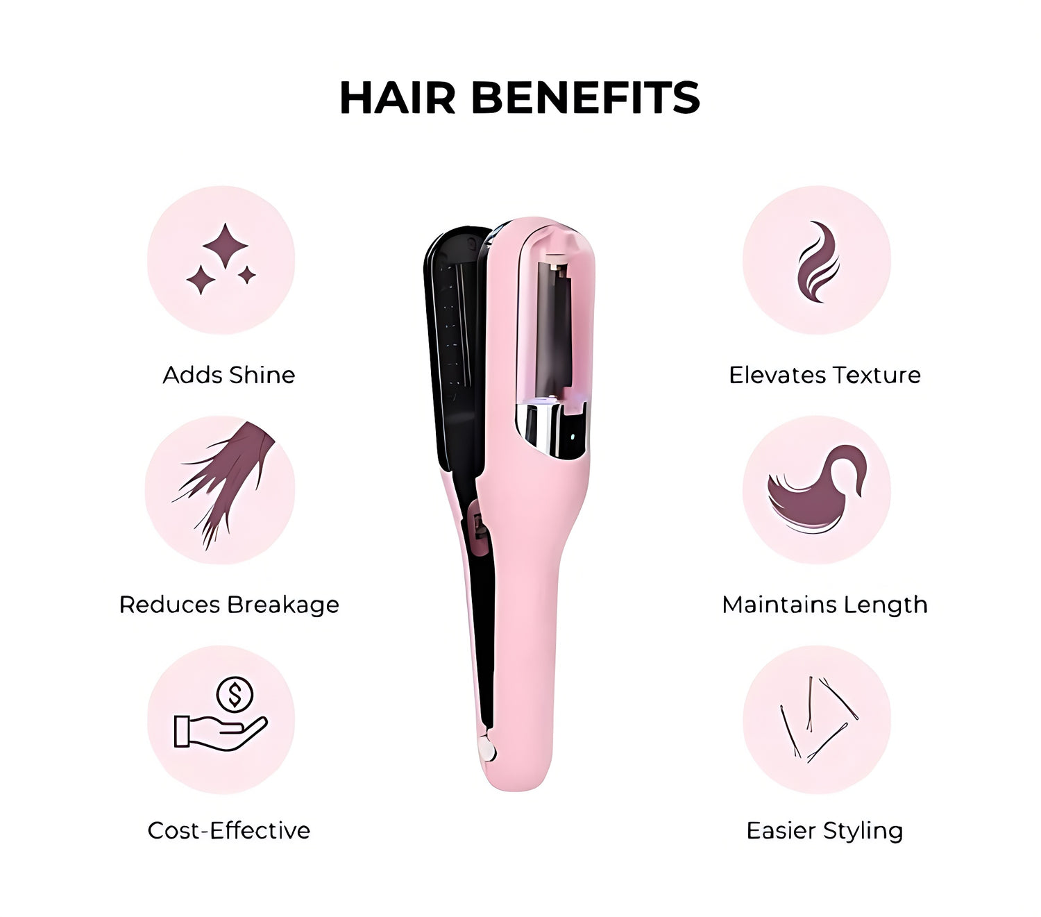 SleekLift SplitPro, a revolutionary tool designed to effectively and efficiently eliminate split ends from your hair. With its precision trimming capabilities, it targets and removes damaged ends, leaving your hair looking smooth, healthy, and revitalized.