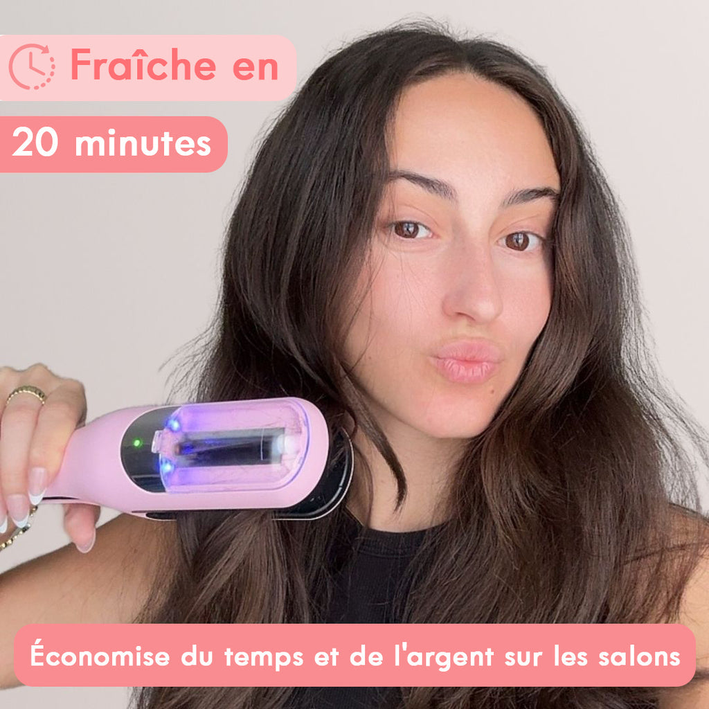 Tu peignes doucement tes cheveux mèche par mèche, et l’appareil fait le reste.